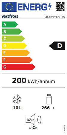 - klasa D, zużycie(rok): energii: 200kWh, pojemność(l): 266/101, klasa klimat.: SN-T, hałas: 37dB