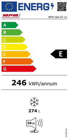 - klasa E, zużycie(rok): energii: 246kWh, pojemność(l): 274, klasa klimat.: SN-N-ST-T, hałas: 39dB